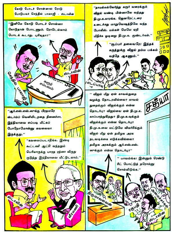 ஒரே சமயத்தில் மூன்று 'குட்டு'கள்வேட்பாளர் தேர்வில் தி.மு.க. கவனம் !கரூர் பெருந்துயர்தமிழகம் தலைநிமிர தமிழனின் பயணம் - நயினார் நாகேந்திரனின் புது வியூகம்தி.மு.க.வுக்கு எதிராக காங்கிரஸில் வலுக்கும் குரல்கள் !சி.பி.ஐ.க்கு வந்த சோதனைபிஹார் தேர்தல் நிலவரம்தி.மு.க. அரசின் நான்காண்டு சாதனை - ஒரு பார்வை - 20"சோ ஸாரின் விளையாட்டு" - புத்தகப் பதிப்பாளார் அல்லயன்ஸ் ஸ்ரீனிவாசன்ஜாதிநாயக ஆதாயம்ஒரு பக்கம் போர், மறுபக்கம் அமைதிஜன்னல் வழியேடெல்லி டைரிஉண்மை வெளிவருமா?G.D.நாயுடு மேம்பாலமும் - பெயர் சர்ச்சையும்பணவீக்கக் கட்டுப்பாடு : இந்தியாவின் இலக்கு அடிப்படையிலான அணுகுமுறைதவறான பிரசாரங்கள், தம்பட்டங்கள் !செண்பகவல்லி அணை செப்பனிடப்படுமா?மஹாபாரதம் பேசுகிறது - சோடியர் மிஸ்டர் துக்ளக்கார்டூன் சத்யாகார்டூன் ராஜுகார்டூன் அட்டை